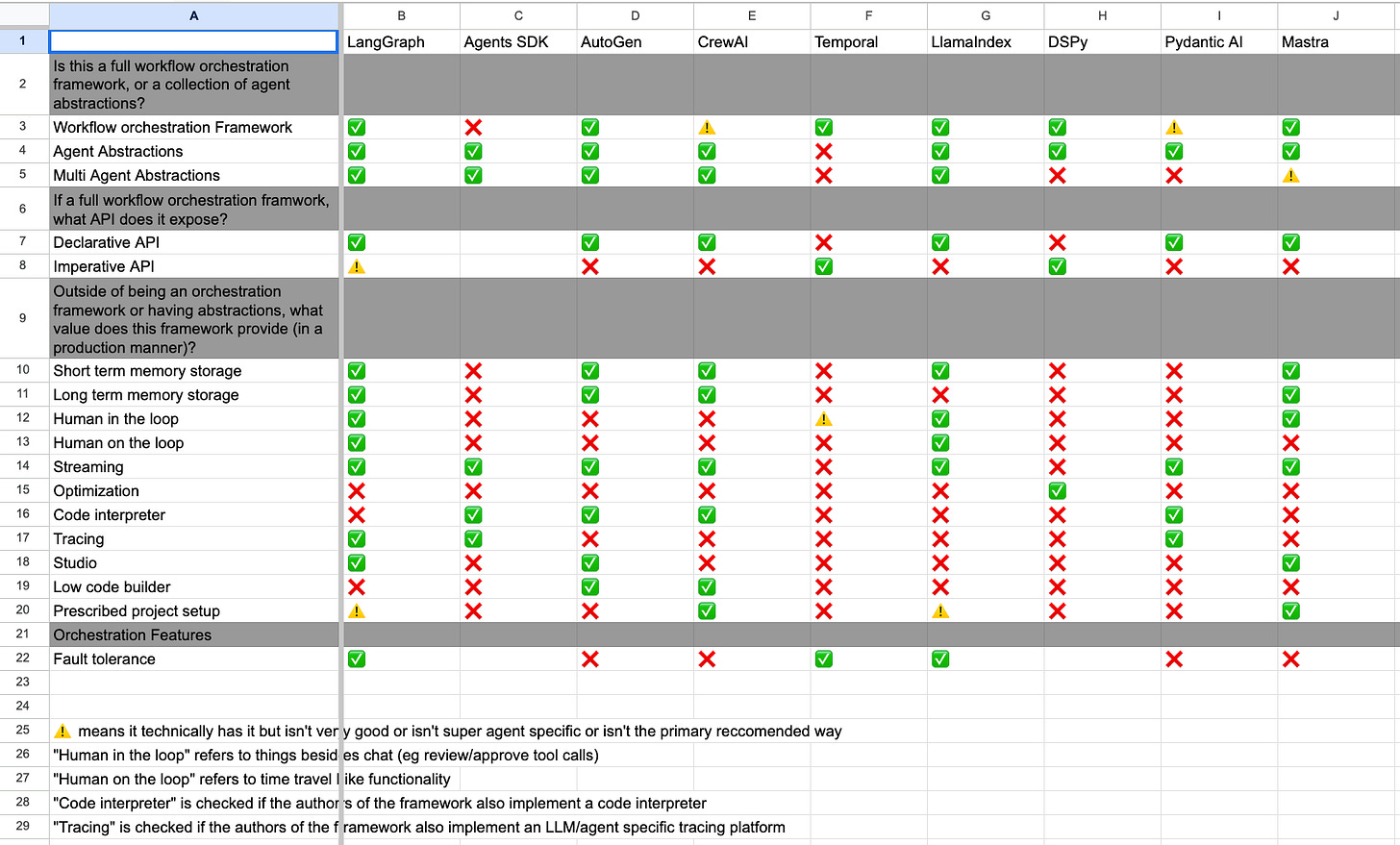 As the agent paradigm matures, a dynamic ecosystem of orchestration frameworks has emerged, each offering distinct capabilities for different use cases. Building on Harrison Chase's comprehensive analysis (full comparison here), we examine three leading solutions that highlight the diverse approaches to agent architecture: