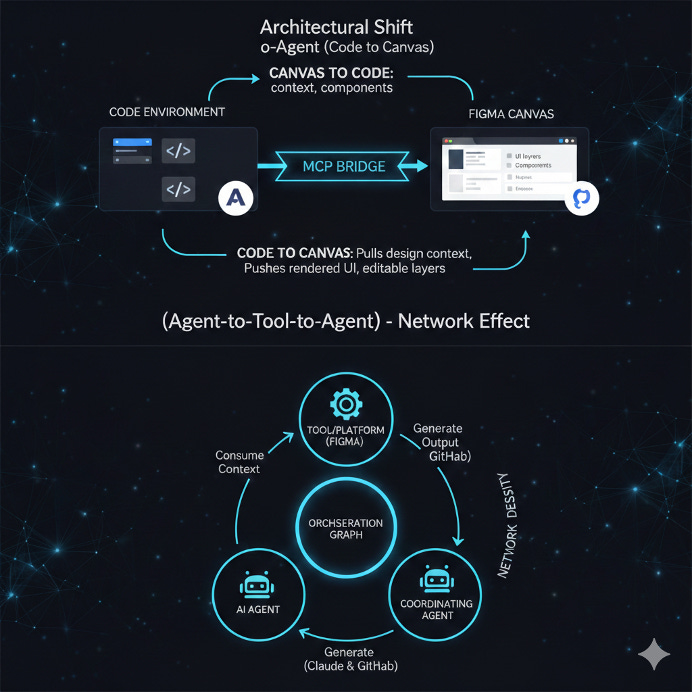 By building on MCP rather than a proprietary API, Figma has done something most incumbents under pressure have not. It has positioned itself as a node in the emerging orchestration graph. Not a siloed tool at risk of bypass, but a surface through which agents must pass to accomplish design-to-code and code-to-design workflows. The distinction matters. Tools can be replaced. Nodes in a coordination graph become harder to remove the more agents route through them.