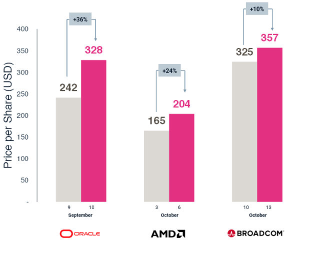 AMD will supply hundreds of thousands of MI450 GPUs and build dedicated gigawatt-scale facilities. In exchange, OpenAI receives an option to acquire 160 million AMD shares at one cent each—approximately 10% of the company—potentially generating over $100 billion in revenue for AMD across four years.