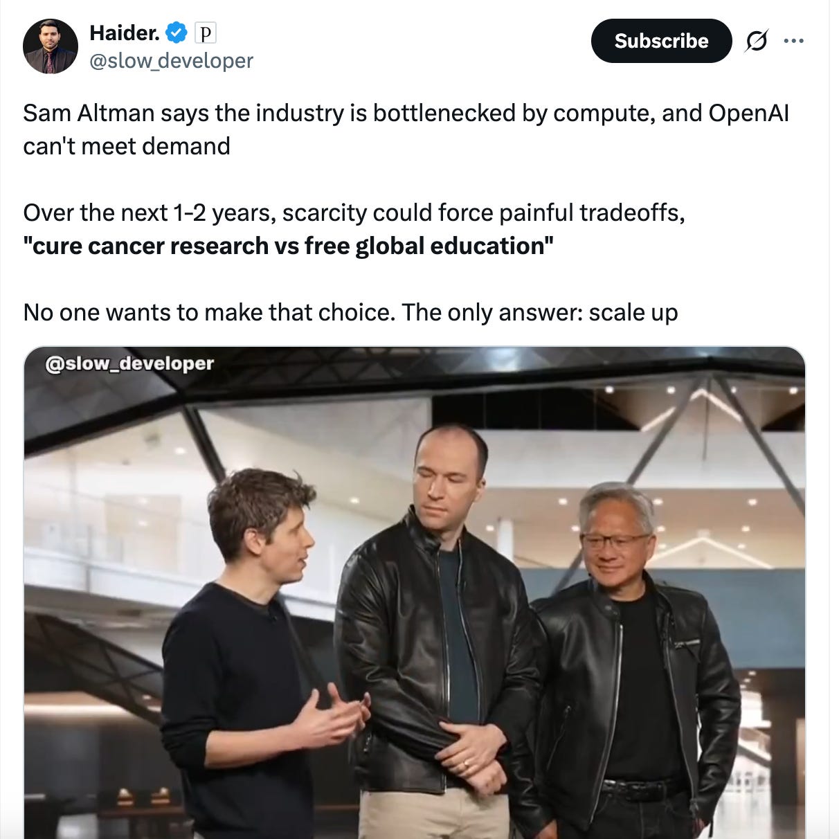 No matter. The message is the same. In the age of AI, access to compute infrastructure is existential.